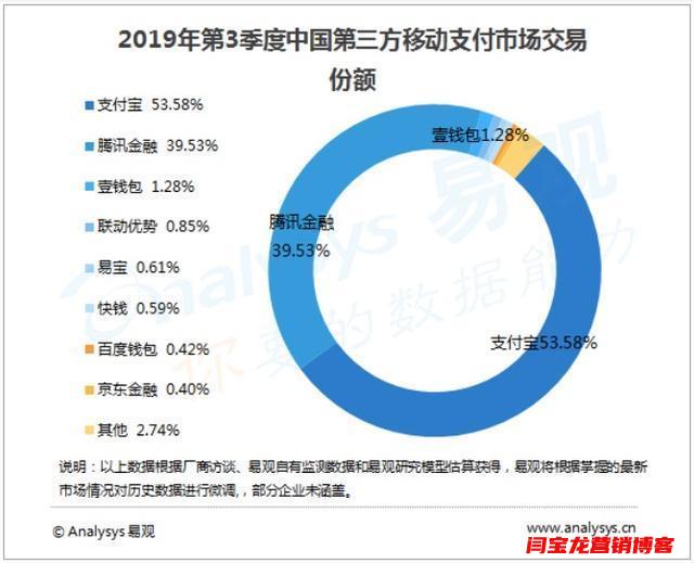 2019 年 Q3,支付寶、財(cái)富通(含微信支付)占據(jù)了中國(guó)移動(dòng)支付市場(chǎng)的 93.11%,分列一、二名;2020 年 Q3,支付寶與財(cái)付通依舊穩(wěn)居一二,緊隨其后的是壹錢包等移動(dòng)支付代表,而 PayPal 并未在列。